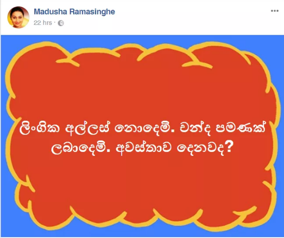 මේ සමගම ඇය තවත් සටහනක් මුහුණු පොතට එකතු කර තිබුණු අයුරු අපට දැකගන්නට ලැබුණා.