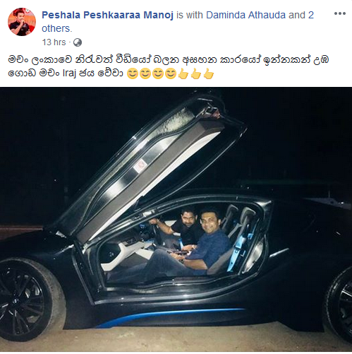 ඉතින් පේෂල, ඉරාජ් එක්ක ඉරාජ්ගේ මෝටර් රථයේ ඉන්න ඡායාරූපයට යොදා ඇති සටහන ගැන මේ වෙද්දි බොහෝ දෙනෙක් කතාවෙන්න පටන් අරන් තියෙනවා.