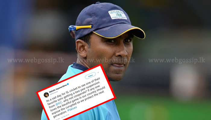 ශ්රී ලංකාවේ හොඳම පුත්රයෙක්ට වසර දෙකක ක්රිකට් තහනමක් වැටීමට ශ්රී ලංකා ක්රිකට් ක්රීඩාවේ කනගාටුදායක දිනයක් බව ශ්රී ලංකා ක්රිකට් හිටපු නායක මහේල ජයවර්ධන පවසනවා.