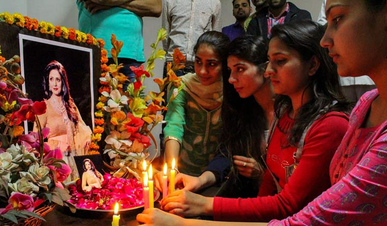 විදෙස් මාධ්ය වාර්තා කළේ ඊයේ සවස 7.30ට පමණ ඇගේ දේහය රැගත් ගුවන් යානය මුම්බායි වෙත ලඟා වූ බවයි. අනතුරුව පවුලේ ඥාතින් විසින් සිරුර බාරගෙන අගේ නිවහන වෙත රැගෙන ආ බව සඳහන්.
