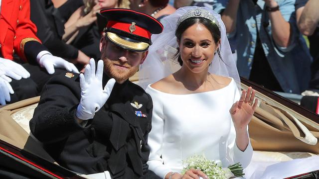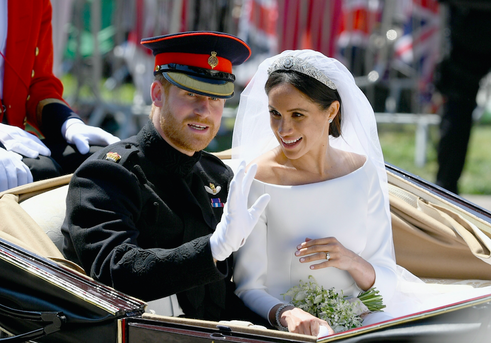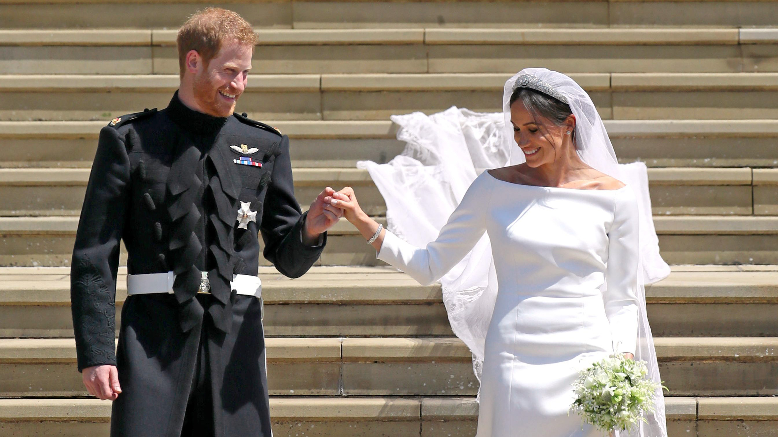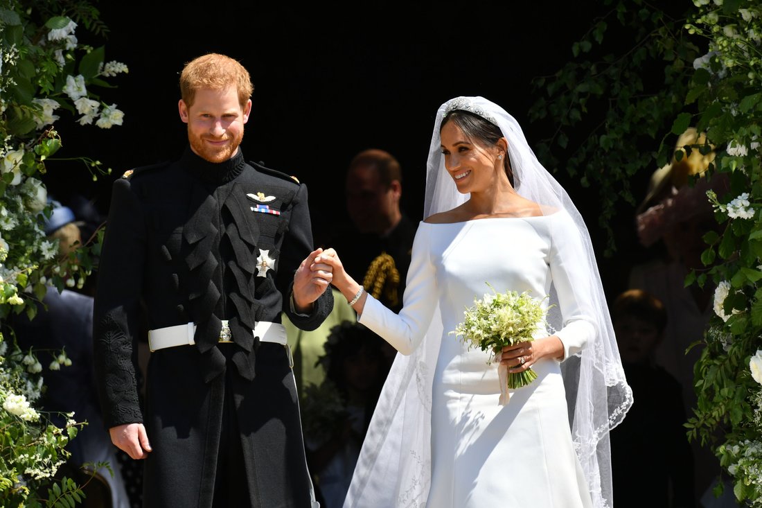 WINDSOR, UNITED KINGDOM – MAY 19: Britain’s Prince Harry, Duke of Sussex and his wife Meghan, Duchess of Sussex leave from the West Door of St George’s Chapel, Windsor Castle, in Windsor on May 19, 2018 in Windsor, England. (Photo by Ben STANSALL – WPA Pool/Getty Images)