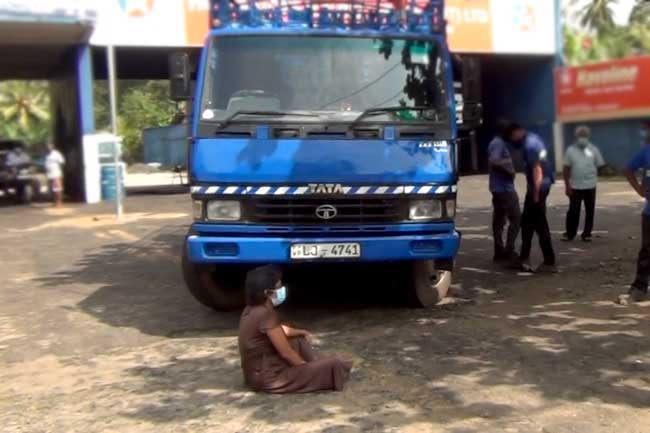 ලොරියේ මග හරස් කර බිම වාඩිවී පැයකට ආසන්න කාලයක් ඇය විරෝධතාවයේ නිතර වූ බව වාර්තා වුණා.