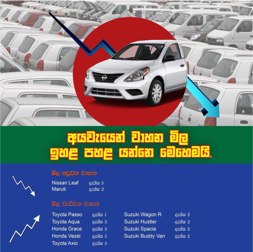 ඉදිරියේදී වාහන මිල අඩුවන ආකාරය බව දැක්වෙන වගුවක් සම්බන්ධයෙන් මේ දිනවල සමාජජාල මාධ්යයන්වල වේගයෙන් පැතිරෙනවා.