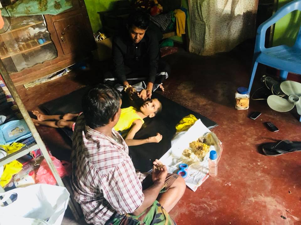 ඉතින් මේ දරුවාට මෙහෙම වෙලා තියෙන්නේ මාස 06 දි රෝහලේදී දීපු එන්නතක් වැරදිලා. ඒවගේම තාත්තා තමයි දරුවාගේ හැමදේම කරන්නේ. අම්මා මේ අයව දාලා ගිහින්. කොහොමවුණත් මේ තාත්තායි පුතයි ගොඩක් අසරණ වෙලා හිටියේ.