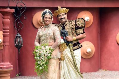 නැහැ. එදා අපි සැරසුණේ බටහිර මනාල යුවළක් විදියටයි. මම ටයිකෝට් ඇන්දා ජෙනි වේල් පැලඳලා බටහිර මනාලියක වගේ සැරසුණා. ඒ හින්දා මේ උත්සවයට උඩරට ඇඳුමින් සැරසුණා. මේ වේලාවේ විශේෂයෙන් කිව යුත්තක් තියෙනවා. අපේ මේ උත්සවයට නොමිලේ අනුග්රහය දැක්වූ කීප දෙනෙකු ඉන්නවා.