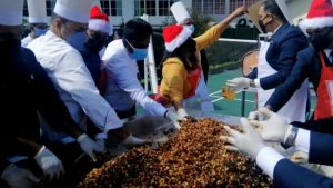 ග්රැන්ඩ් හෝටලයේ ප්රධාන සුපවේදි විරාජ් ජයරත්න මහතා ඇතුළු සුපවේදින් 07 දෙනෙකු මෙම නත්තල් කෙක් ගෙඩියේ මිශ්රණය සකස් කිරිම සදහා සහභාගි විය.