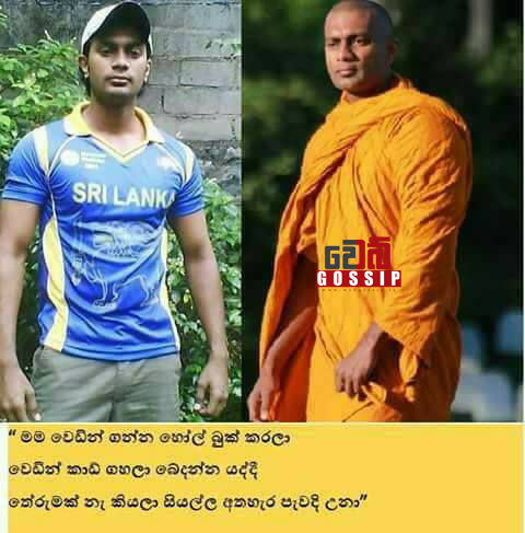 ඒ මම වෙඩින් ගන්න හෝල් බුක් කරලා වෙඩින් කාඩ් ගහලා බෙදන්න යද්දි තේරුමක් නෑ කියලා සියල්ල අත්හැර පැවදිවුණා යනුවෙන්.