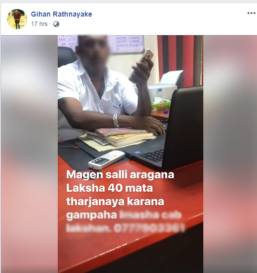 ඔහුගේ Video එකක් සහ ඔහුගේ දුරකථන අංකය මේ Facebook සටහනේ තිබෙනවා.