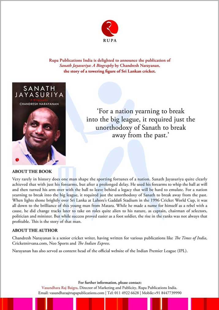 ඉතින් සනත් ජයසූරිය ගැන චරිතාපදානයක් ඉන්දීය රූප ප්රකාශකයෙක් විසින් ඉදිරිපත් කරලා තියෙනවා.