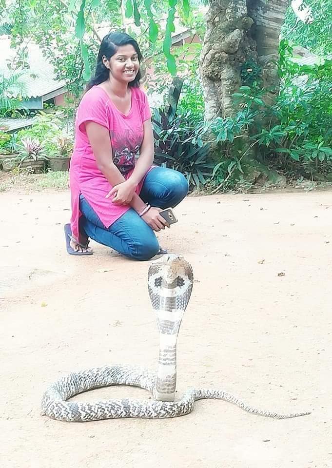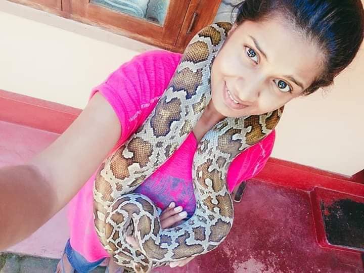 සර්පයන් සමඟ සිටින ඡායාරූප පෙලක් නිසා මෙම තරුණිය ගැන හැමෝම වගේ හොයන්න පටන් ගත්තා.