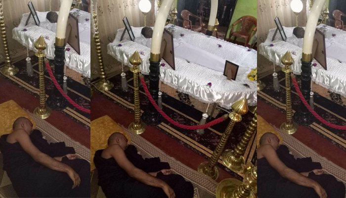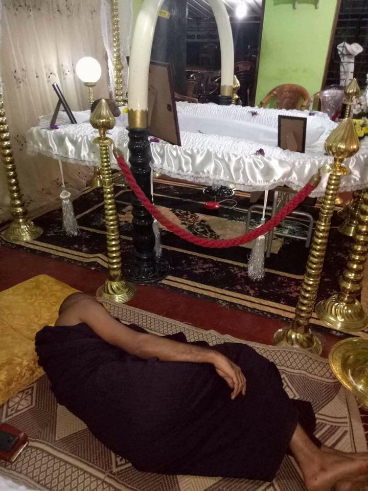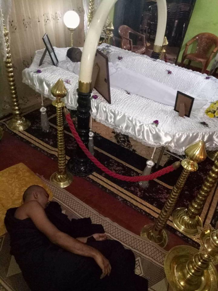 ඒ ඡායාරූප වල දැක්වෙන්නේ සිවුරු දරාගෙන සිටින බුද්ධ පුත්රයෙක් තමන්ව මේ ලෝකෙට බිහිකරපු අම්මා මෙලොවින් සමුඅරන් යන දවසේ ඇය ලඟ තනි රකින ආකාරයයි.