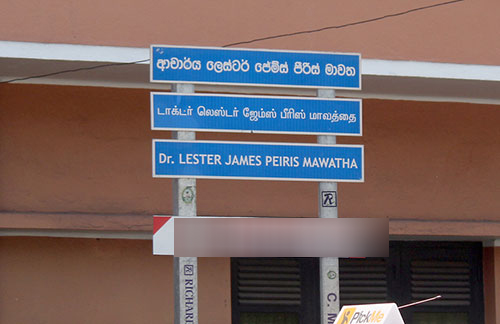 මෙම කෘතහස්ත සිනමාවේදියාට ගෞරවයක් ලෙස මෙම නිවස පිහිටි මාවත පසුකාලීනව ආචාර්ය ලෙස්ටර් ජේමිස් පීරිස් මාවත ලෙස නම් කෙරුණා.