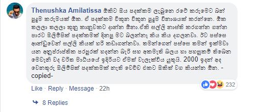 සමාජජාලා මාධ්යයේ පළවූ අදහස් කිහිපයක් පහතින්…