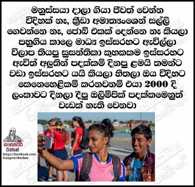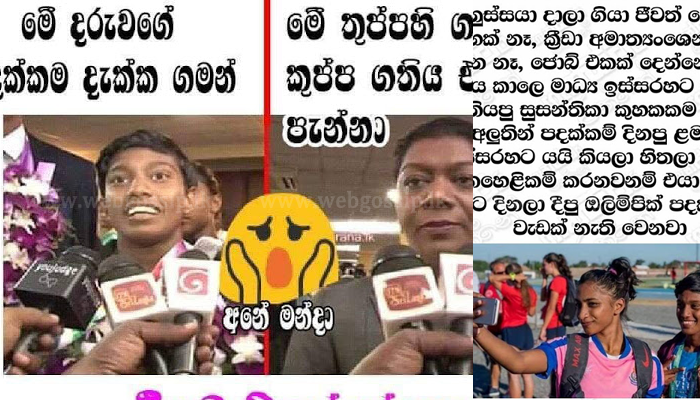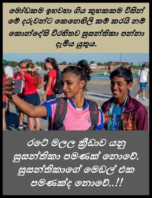 ඇය එළෙස රටට කීර්තියක් ගෙන එද්දී යොවුන් මළල ක්රීඩා කණ්ඩායම භාරව සිටිනා ක්රීඩා අමාත්යංශයේ නිළධාරිනි සුසන්තිකා ජයසිංහ යොවුන් මළල ක්රීඩා කණ්ඩායම පිළිබදව දැක්වූ අදහස් සම්බන්ධයෙන් ඇයට දසතින්ම දෝෂාරෝපණ එල්ලවුණා..