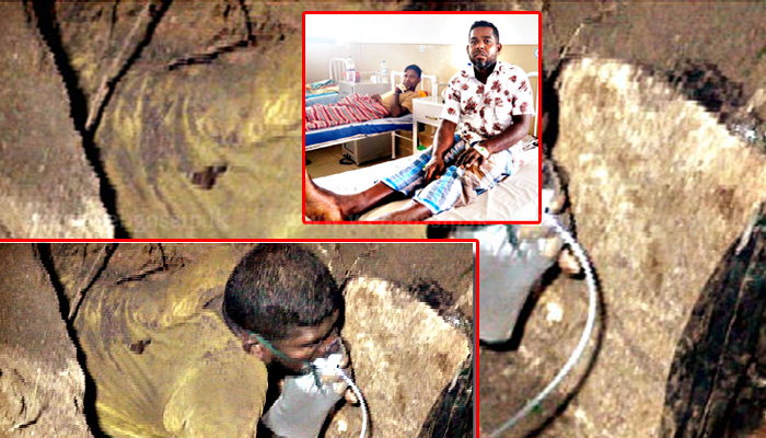 ඒ සමගම මාවනැල්ල පොලිසියේ මහත්වරු පිරිසක් හා සුවසැරිය ගිලන්රථ සේවයේ නිලධාරීන් ඇවිත් අපට ඔක්ෂිජන් දුන්නා. ඊට පස්සේ එතැනට ආව අය පස් අයින් කරලා අපි දෙන්නා බේරගන්න කටයුතු කරද්දී බැකෝ එකකුත් ගෙනැල්ලා එයත් ඒ සඳහා උදව් කර ගත්තා.