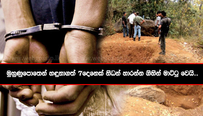 නිධානයක් හාරමින් සිටි පුද්ගලයන් හත්දෙනකු මෝටර් රථ දෙකක් ඇතුළු උපකරණ තොගයක් සමගින් 23 වැනිදා රාති්ර හැඩිගල්ල, පුවක්දොල රක්ෂිතයේ දී අත්අඩංගුවට ගත් බව කළුතර කොට්ඨාස නොවිසඳුණු අපරාධ විමර්ශන ඒකකය කියයි.