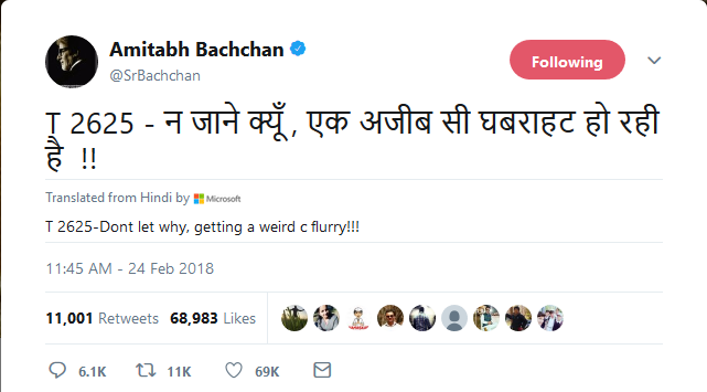 “කිසියම් අසුබ දෙයක් සිදුවීමට යන බව මට දැනෙනවා” යනුවෙන් අමිතාබ් බච්චන් දැමූ එම සටහනේ සඳහන් වනවා.