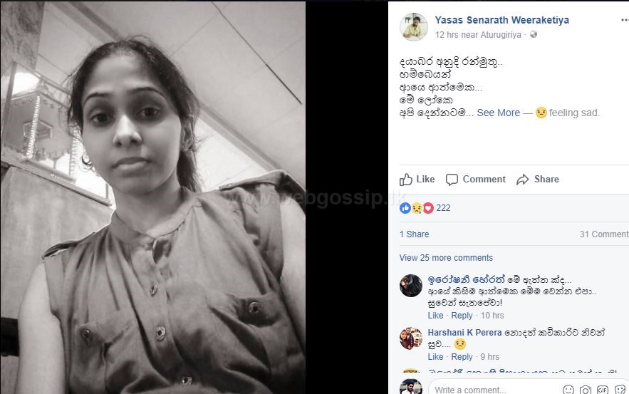 ඊයේ කවුරුත් හිතුවේ නැති විදිහට ඇය ජීවිත ගමනට සමුදීලා තිබුණා.