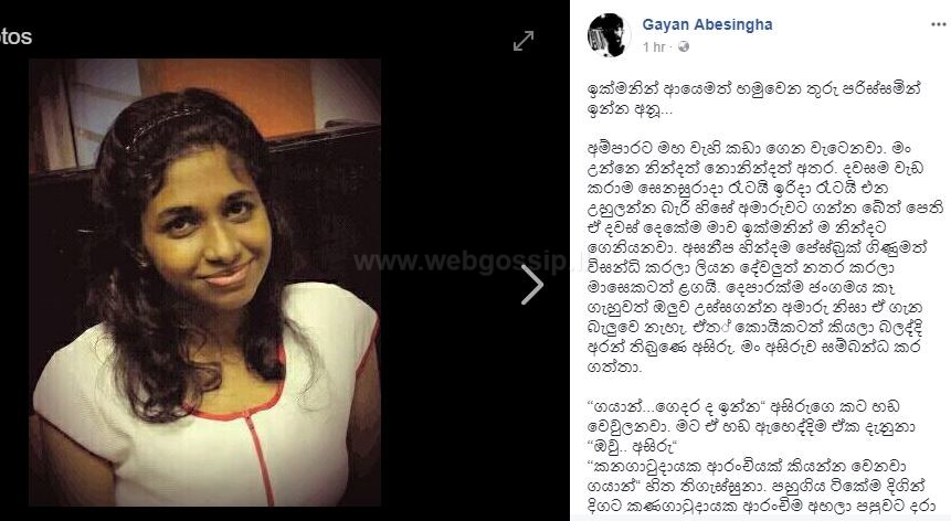 හුඟක් කාලෙකට කලින් ඒ කතාබහ ඉවර උනේ ඇය ගෙදරට එන විදියත් කියලා ෆෝන් නම්බර් එකත් දුන්නට පස්සේ. කොහොමහරි ඇයව හමුවෙන්න යන එක මග හැරුනා. ඒත් අපි පුළුවන් වෙලාවට කතා බහ කළා චැට් එකෙන්. මම මේ මුහුණු පොත ඇතුලේ දකින්න කතා බහ කරන්න එකට පින්තුරයක් ගන්න ආසාවෙන් ඉන්න අය අතුරෙන් ඇය එක් කෙනෙක්. ඒ වගේම සහෝදරියක් ගාණට මං හරි ආදරේ කල මට ශක්තියක් වෙච්ච කෙනෙක් එයා.
