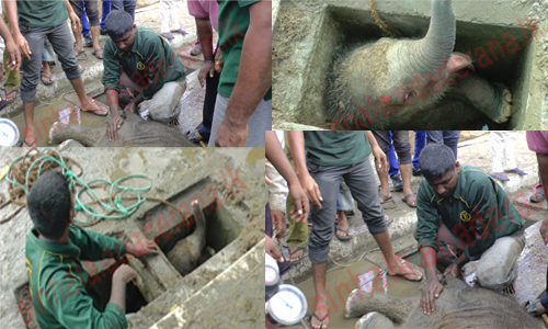 හිතාගන්නවත් බැරි තැනකට වැටුණු අලි පැටවා බේරාගත් මෙහෙයුම (වීඩියෝ)