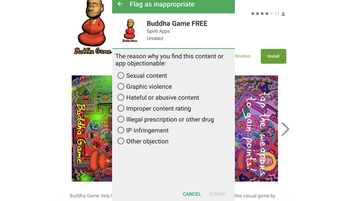 ඇන්ඩ්රොයිඩ් තාක්ෂණය හරහා භාගත කළ බුදුරජාණන්වහන්සේට අපහාස වන අයුරින් සකස් කළ ජංගම දුරකතන ක්රීඩා මෘදුකාංගයක් පරිද්දෙන් Google App Store වෙත ඇතුලු කර ඇත.