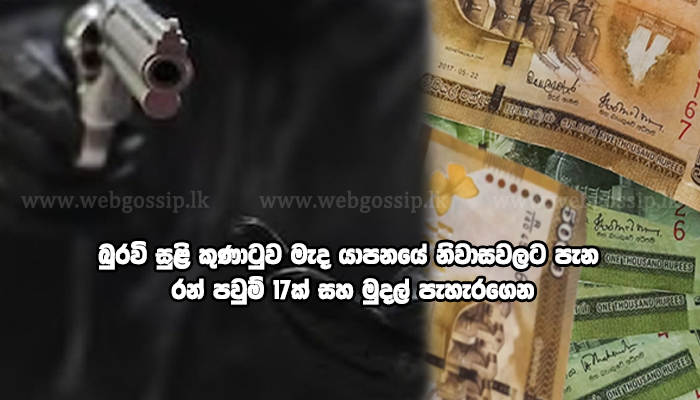 යාපනයේ මනිපායී සින්නප්පා පාරේ නිවසකට ඇතුළු වූ මෙම මංකොල්ලකරුවන් දෙදෙනා පිහි පෙන්වා නිවැසියන් බියකොට රන් පවුම් හතක් හා මුදලින් රු. 50,000 ක් රැගෙන පලාගොස් තිබේ.