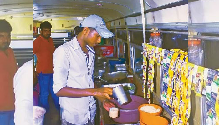 බස් එක ඇතුළ හැම කෑමක්ම සකසන්න පුළුවන් වෙන්න හදලා.