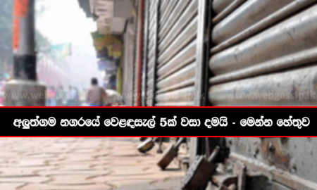 අලුත්ගම නගරයේ තවත් වෙළඳසැල් පහක් පොලිසිය සහ සෞඛ්ය අංශ එක්ව ඊයේ (16) දින සවස වසා දමා තිබෙන බව බේරුවල සෞඛ්ය වෛද්ය නිලධාරි...