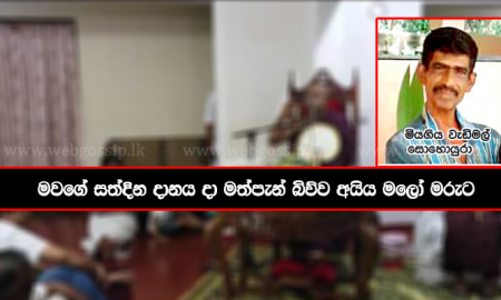 මීරිගම මොට්ටෑවවත්ත ප්රදේශයේ පැවැති තම මවගේ සත්දින දානයට සහභාගි වූ අයියා මලෝ දෙදෙනකු විදේශීය මත්පැන් බෝතලයක් පානය කිරීමෙන් පසු ඇති වූ ආසාත්මිකතාවකින්...
