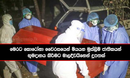 කොරෝනා නිසා මියයන ශී්ර ලංකාවේ මුස්ලිම් ජාතිකයින් භූමදානයට මාලදිවයින් රජය විසින් වෙනම දූපතකුත් වෙන් කර ඇති බව වාර්තාවේ. මාලදිවයින් රජය මේ සම්බන්ධයෙන්...