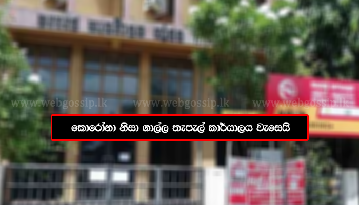 කොරෝනා වසංගත තත්වය හමුවේ ගාල්ල තැපල් කාර්යාලය අද (11)දහවල් සිට නැවත දැනුම් දෙන තුරු වසා දැමිමට තින්දු කළ බව දකුණු පළාත් භාර නියෝජ්ය තැපල්පති ටි.එල්.එම්.එස් මෙන්ඩිස් මහත්මිය පැවසුවාය.