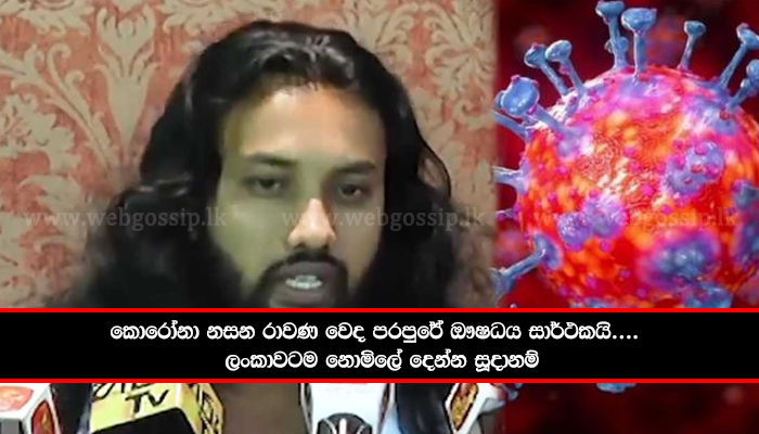 රාවණ පරපුරේ සිට පැවත එන රන් සන්නසකින් එළිදක්වන ලද මෙම ඖෂධයක් වසර අවුරුදු 9500 ක් පමණ පැරණි යයිද ඔහු සදහන් කරයි.