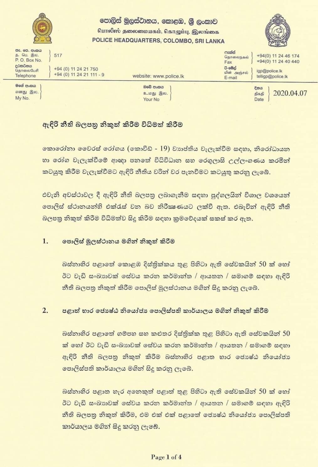 ඇදිරි නීති බලපත්‍රයක් ලබාගන්නේ කොහොමද..? පොලිස් චක්‍රලේඛය මෙන්න