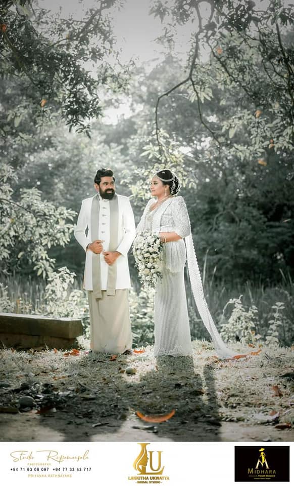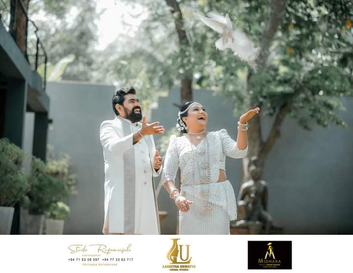 ආදරණීය පවුල් ජීවිතයක් ගත කරන දමිතා සිය සැමියා එක්ක මංගල ඇදුමින් සැරසිලා ඡායාරූප කිහිපයක් ගෙන තිබුණා.