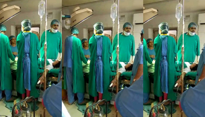 මෙහෙම රණ්ඩු වුණේ සැත්කමකට භාජනය කර තිබූ කාන්තාවගේ උදර කොටසක් කපා තිබෙන අතරතුරයි.