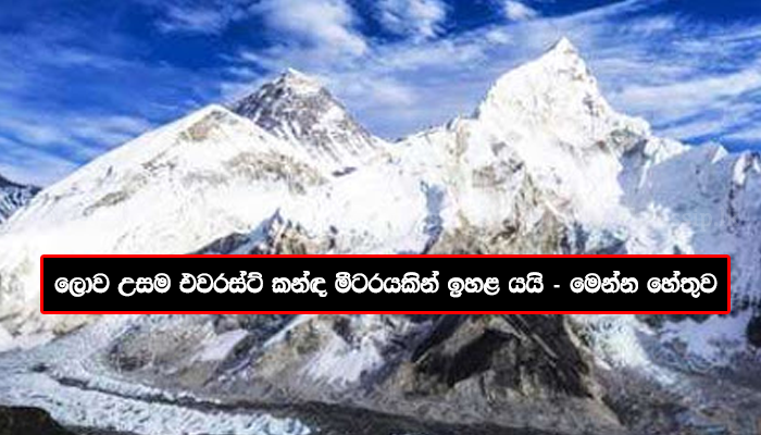 ලොව ඉහලම කඳු මුදුන වන එවරස්ට් කඳු මුදුනේ උස මීටරයකින් පමණ ඉහල ගොස් තිබෙනවා.