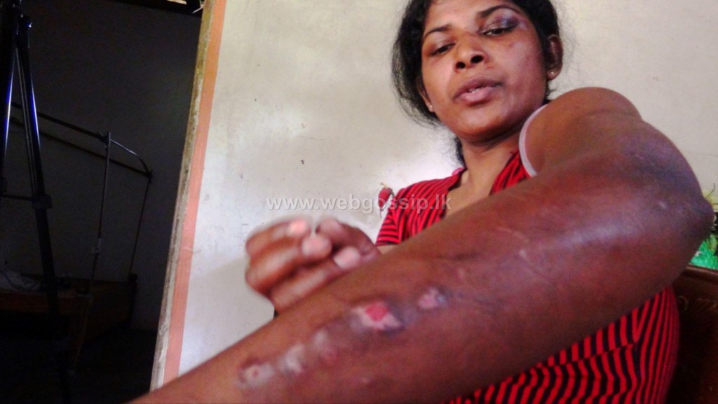 බරපතළ ලෙස පහර කෑමට ලක්ව ඇති මෙම ගෘහ සේවිකාව නිවසට පැමිණීමත් සමඟ ඇයව රෝහල් ගතකරලා.
