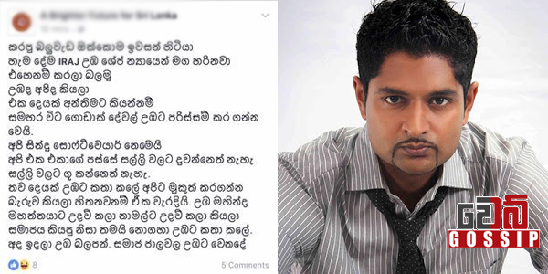ඒ ගායක ඉරාජ් වීරරත්නගේ පැමිණිල්ලකට අනුවයි. ඒ සම්බන්ධයෙන් ෆේස්බුක් පිටු පවත්වාගෙන යන පුද්ගලයින් ඉරාජ් සම්බන්ධයෙන් දැඩි අප්රසාදය පල කරමින් සිටිනවා.
