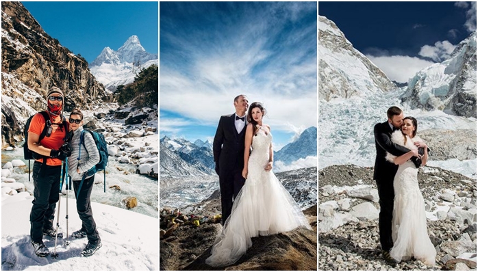 ඒ විදිහට වෙනස්ම විදිහට කරපු විවාහ උත්සවයක් ගැන අපිට අහන්න ලැබුණේ ලොව උසම කඳු මුදුන වුණු එවරස්ට් කදුමුදුනින්.