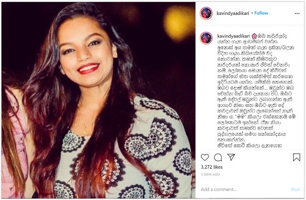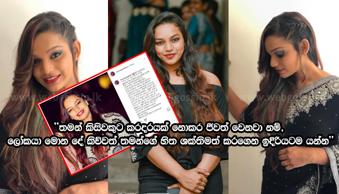 ඉතින් ඈ පසුගිය දිනෙක ඇගේ ඉන්ස්ට්රග්රෑම් ගිණුමට සටහනක් එක් කර තිබුණා.