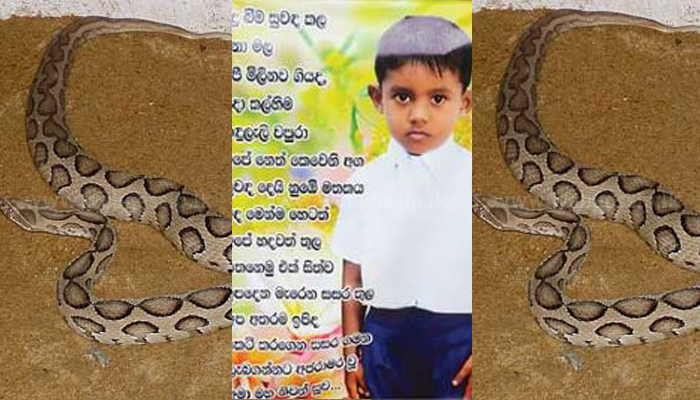 පුතා අපූරුවට ඇස් ඇරලා බලලා මාත් එක්ක කතා කළා. දෙපාරක් මගදී වමනය දැමුවා. එයාට වාහනයක යන්නට බෑ. වමනය යනවා. සර්ප විෂටද දන්නෙත් නෑ. ඉක්මනින් රෝහලේ වාට්ටුවට දාලා සේලයින් දුන්නා. ඒ අතර තුර පුතා මාත් එක්ක හොඳට කතා කළා. අහන ප්රශ්නවලට උත්තර දුන්නා.