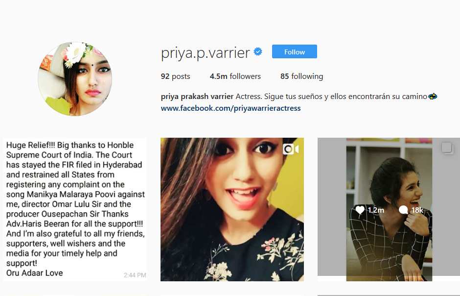 18 වැනි වියේ පසුවන ප්රියා ප්රකාශ් තමයි මෙයට දායකවන නිළිය.