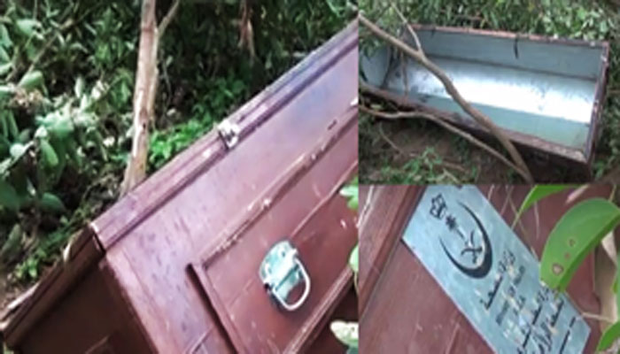මෙම පෙට්ටියෙහි උඩු පියන් පත ගැලවී ගොස් තිබූ අතර, අරාබි අක්ෂර සඳහන් වැකි සඳහන් වී තිබූ බවයි ප්‍රදේශවාසීන් පවසා ඇත්තේ.