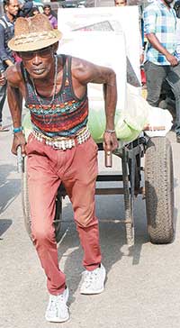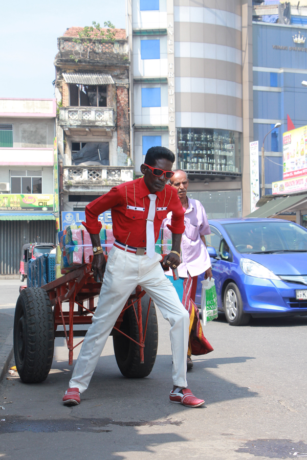 මම වැඩ කරන්නේ කොටුවෙ මේන් ස්ට්රීට් එකේ. ඔක්කොම වාහන ඇතුළු වෙන්නෙ, පිටවෙන්නෙ මෙතනින්. මම මේ හරියෙ තමා කරත්ත වලින් බඩු ගෙනියන්නේ. ලක්ෂ ගණන් බඩු දවසකට එහාට මෙහාට ගෙනියනවා. ඒවට කාවවත් අරින්නෙ නැහැ. මොකද විශ්වාසෙ නැති නිසා. මට හැමෝම ආදරේ නිසා මට හැමදාම වැඩ තියනවා. ඒ වුණාට මම කියන්නේ අනිත් අයටත් වැඩ දෙන්න කියලා. එතකොට බොස්ලා කියන්නේ විශ්වාස නැහැ කියලා. මම කියන්නෙ ඒ වුණාට දීලා බලන්න කියලයි. ඒ කරන දේවල් අපි මැරුණම ගෙනියනවා. විශ්වාසෙ තමා ලෝකෙ තිබෙන ලොකුම දේ. දෙවි කෙනෙක් නෑ කියලා හිතුවට අපි කරන හැමදේම දෙවි කෙනෙක් ලියා ගන්නවා. මම කරන වැඩේ පිළිවෙළට කරනවා. මම අඳින පලඳින එක වුණත් එහෙමයි. වැස්ස වුණත් අව්ව වගේ හිතන් වැඩ කරනවා. ඒ නිසා මිනිස්සු මට හරි ආදරෙයි.