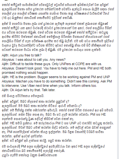 ඒ දූෂණ වංචා පිළබඳ පරීක්ෂණ කිරීමට පිහිටුවා ඇති පාර්ලිමේන්තු කෝප් කමිටුවේ සාමාජිකයන් පස්දෙනෙකුම ආන්දෝලනාත්මක පර්පචුවල් ට්රෙෂරීස් සමාගමේ හිමිකරු වන අර්ජුන් ඇලෝසියස් සමග දුරකතන සංවාද පවත්වා ඇති බවට වූ කතාවත් සමගයි.