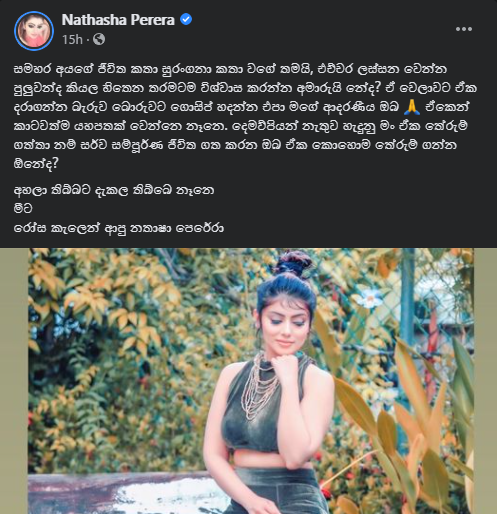 පුංචි තිරයේ ජනප්රිය තරුවක් වුණු ඇය සිය මුහුණුපොතේ අපූරු සටහනක් තබා තිබුණා.