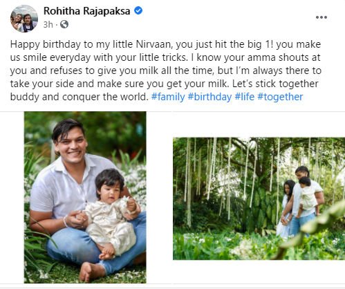 නිර්වාන්ගේ උපන්දිනය වෙනුවෙන් රෝහිත රාජපක්ෂ සිය ෆේස්බුක් ගිණුමේ සටහනක් තබා තිබුණා.