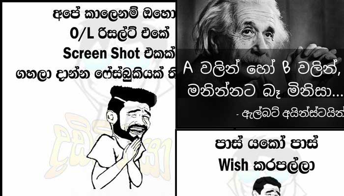 Gossip “A වලින් හෝ B වලින් බෑ මනින්නට මිනිසා” සාපෙළ ගැන බුකියේ මැවුණු රසකතා Share Tweet Share Share Email Comments 2016 අපොස සාමාන්ය පෙළ විභාගයේ ප්රතිඵල ඊයේ දිනයේ නිකුත් කෙරුණා. ඉතින් මේ ගැන නිර්මාණය වුණු නිර්මාණාත්මක අදහස් කිහිපයක් මුහුණු පොතේ අපට දැකගන්නට ලැබුණා. මේ ඒවායින් කිහිපයක්. Related Items: Share Tweet Share Share Email Click to comment Leave a Reply Cancel reply Your email address will not be published. Required fields are marked *Comment Name * Email * Website