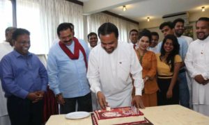 රිමාන්ඩ් භාරයේ පසුවන පාර්ලිමේන්තු මන්ත්රී විමල් වීරවංශ මාංචු කුට්ටමක් සහිතව නිර්මාණය කර ඇති කේක් ගෙඩියක් කපමින් පාර්ලිමේන්තුව තුළ ඊයේ (07 දා) සිය...