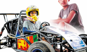 මව්බිමේ නාමය ලොවට කියන්නට ජාතික ධජය සටහන් කර යතුරුපැදි එන්ජිමකින් Formula මෝටර් රියක් තැනූ ඉසුරු